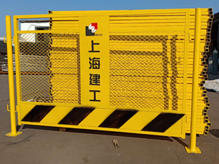 基坑護欄網(wǎng)片設計為黃色、立柱為紅色,或黑黃相間、紅白相間、表面均為噴繪,以達到醒目警示效果。