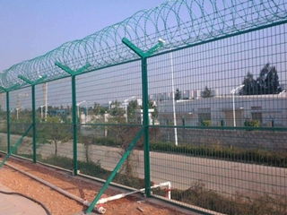 防爬帶刀刺圍欄網(wǎng)采用優(yōu)質低碳鋼絲焊接或編織而成,網(wǎng)孔有50*50方孔75*150長方孔等,絲徑5.0-6.0mm可定,立柱一般采用Y型便于安裝頂端的刺繩或刀片滾籠,立柱60*60mm;80*80mm方型焊管或采用70*100的掛式連接立柱。防爬帶刀刺圍欄網(wǎng)表面處理為噴塑,浸塑或熱鍍鋅處理,顏色一般采用墨綠色,草綠色或銀色,端莊大方,使用壽命長。
