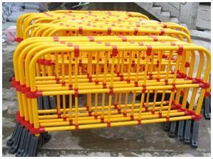 臨時(shí)隔離欄又叫可移動(dòng)圍欄、臨時(shí)護(hù)欄、鐵馬護(hù)欄,主要用于交通市政道路維修時(shí)候的臨時(shí)隔離、臨時(shí)圈圍使用、自由拆裝、安裝簡易、一般由熱鍍鋅管表面進(jìn)行亮麗黃顏色進(jìn)行噴涂、也有用鐵管焊接后進(jìn)行熱鍍鋅處理的,是所有連接部件,都采用插掛連接;底座有兩種一種是臨時(shí)底座,還有一種是條形鐵板底座、重量不等、不需要挖地基,可輕松拆除,隨時(shí)移動(dòng)安裝。