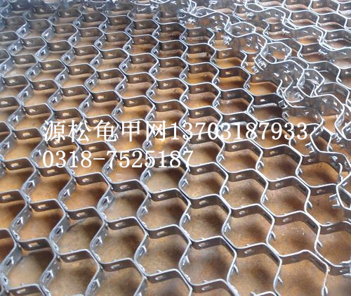 龜甲網(wǎng)特點:六邊均有孔相互聯(lián)通,易彎曲弧度,點焊在殼體內(nèi)壁后,澆上耐火骨料,可增加使用壽命數(shù)倍,而且耐火材料不會剝落,使用壽命長。